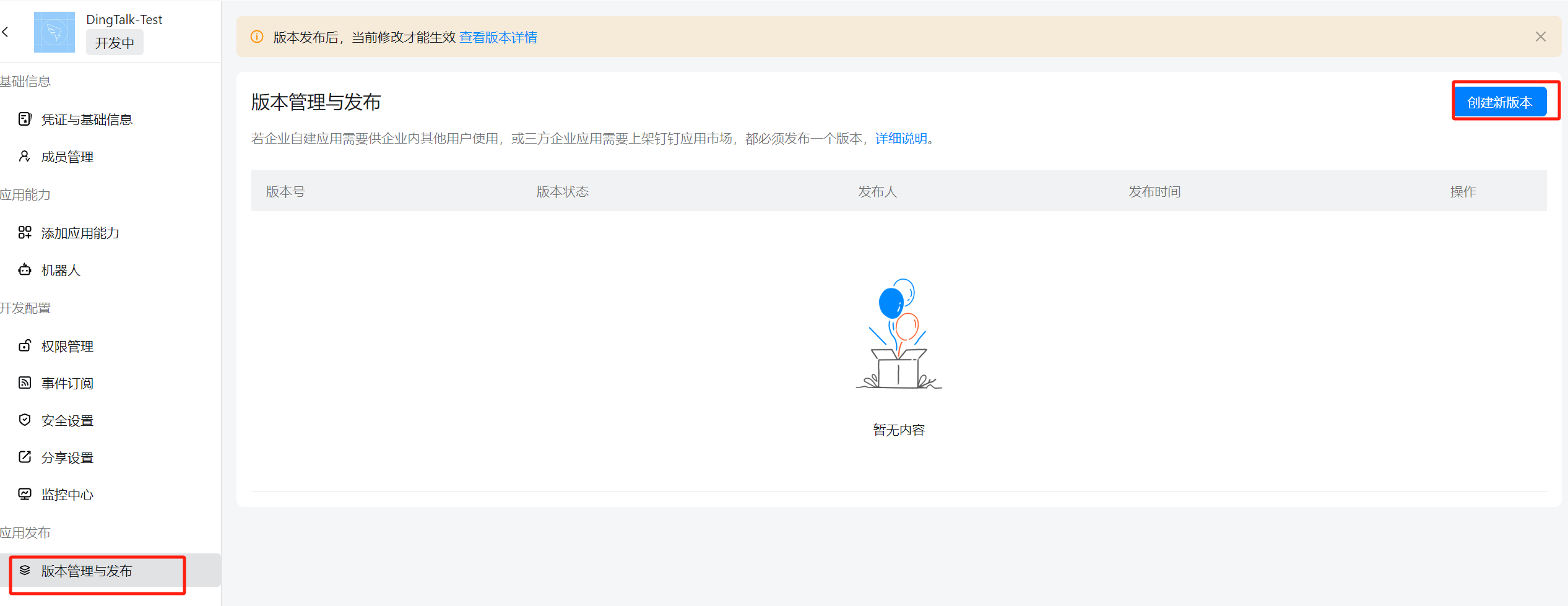 点击 版本管理与发布,创建新版本(审批)发布后即可开始使用: