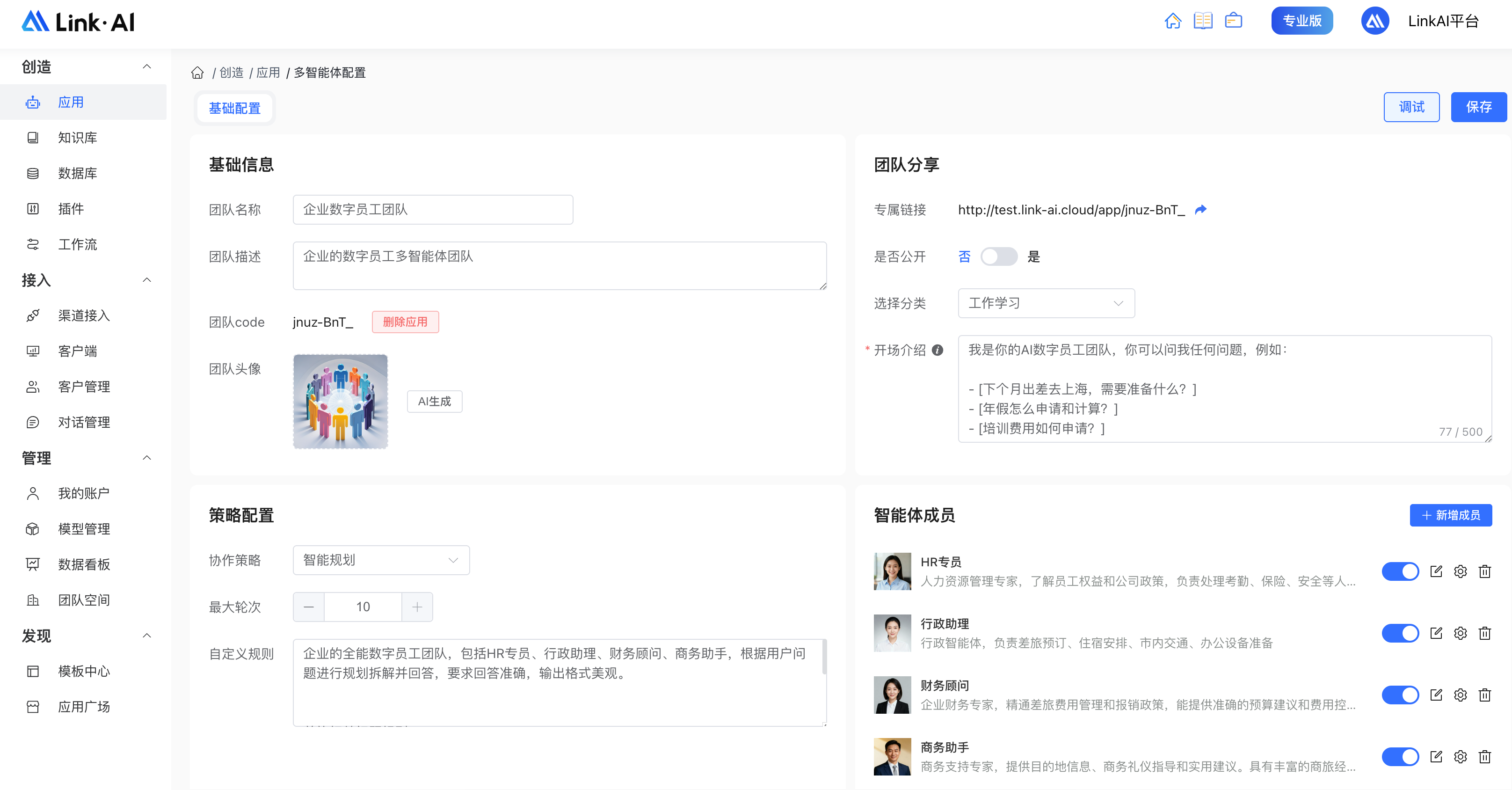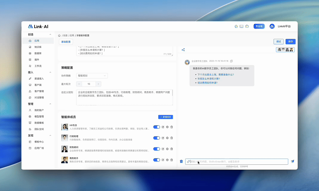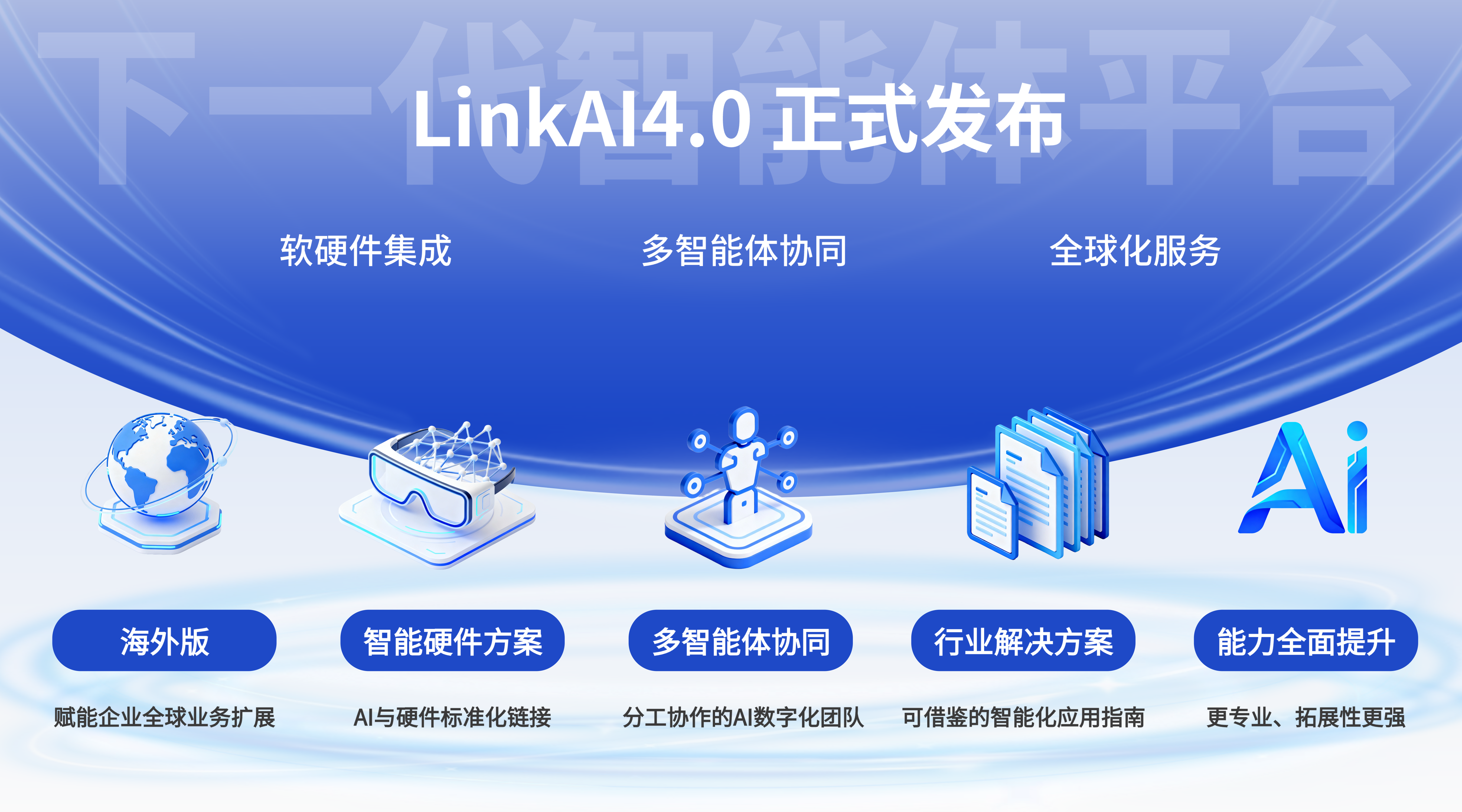 LinkAI 4.0版本以客户实践为基石,对从智能体开发、接入到管理的整体能力做了全面升级。我们期待携手企业,将AI能力深度融入企业业务链条,直面核心业务深水区挑战,为更多复杂场景的落地提供智能化驱动与持续创新支持,成为企业必不可缺的智能化伙伴!