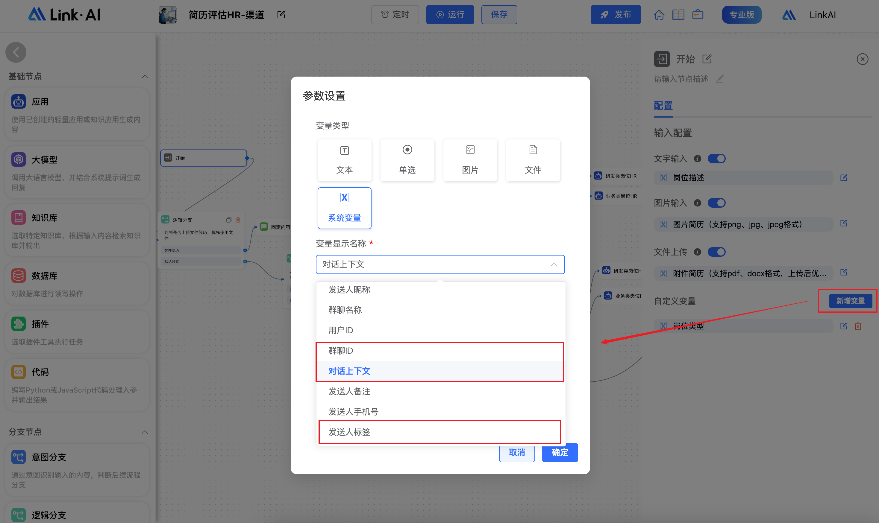 2. 新增对话上下文、群聊ID、用户标签系统变量