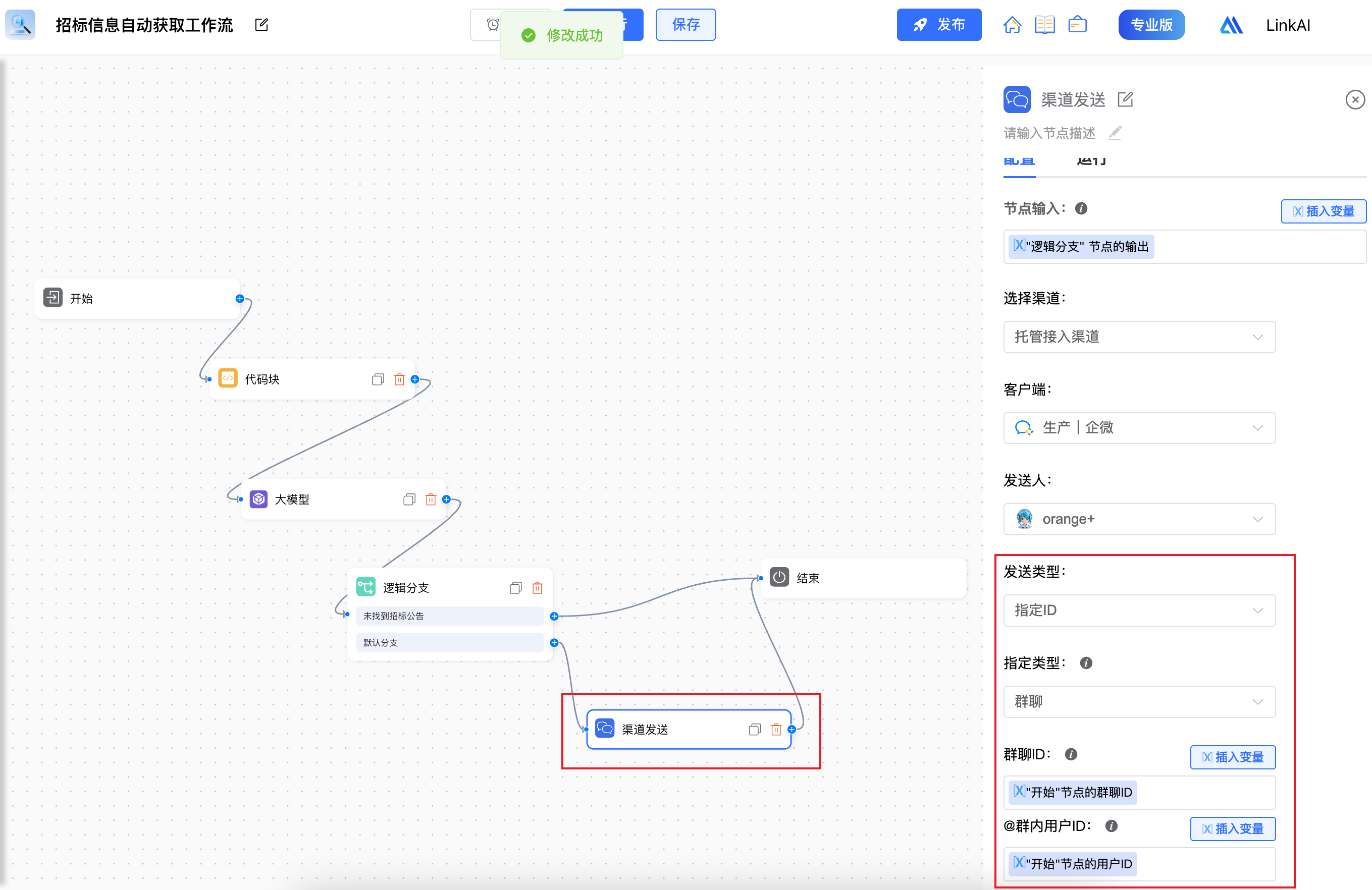 4. 渠道发送节点支持动态配置接收群聊