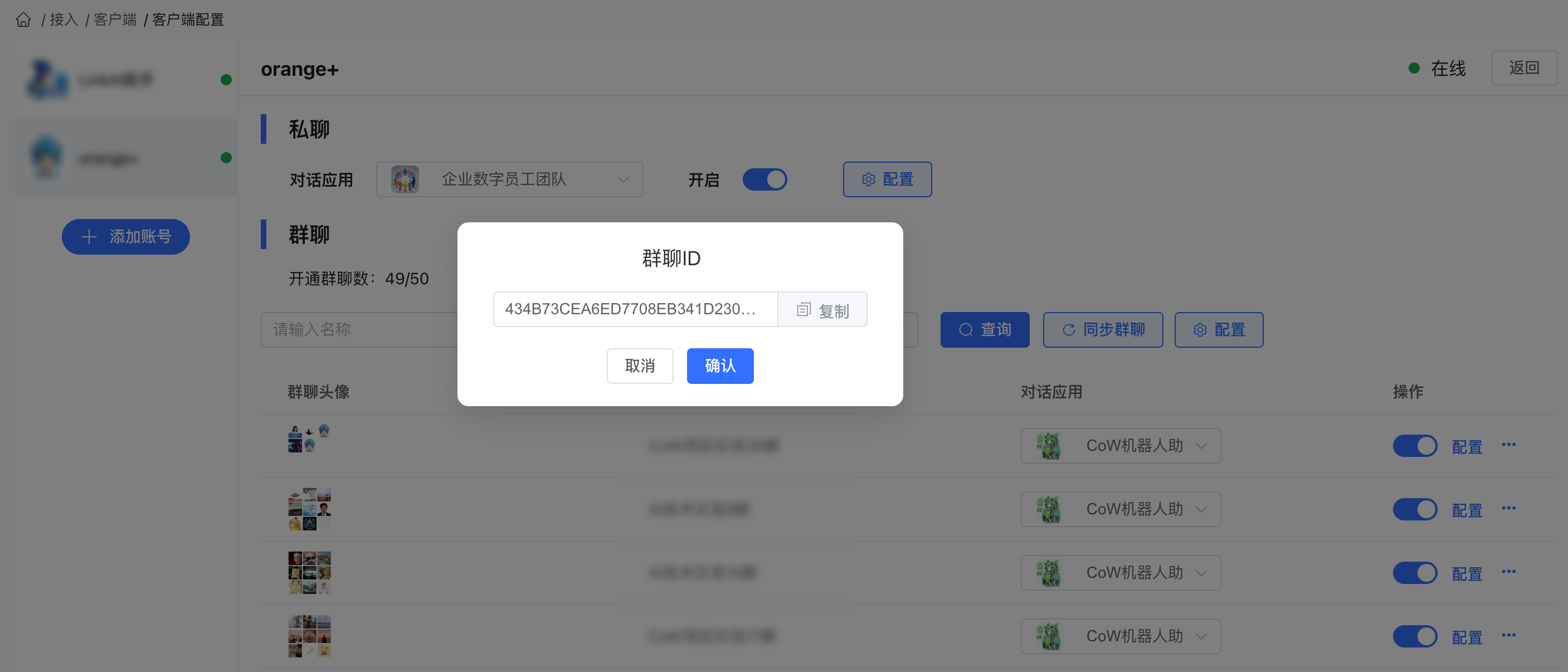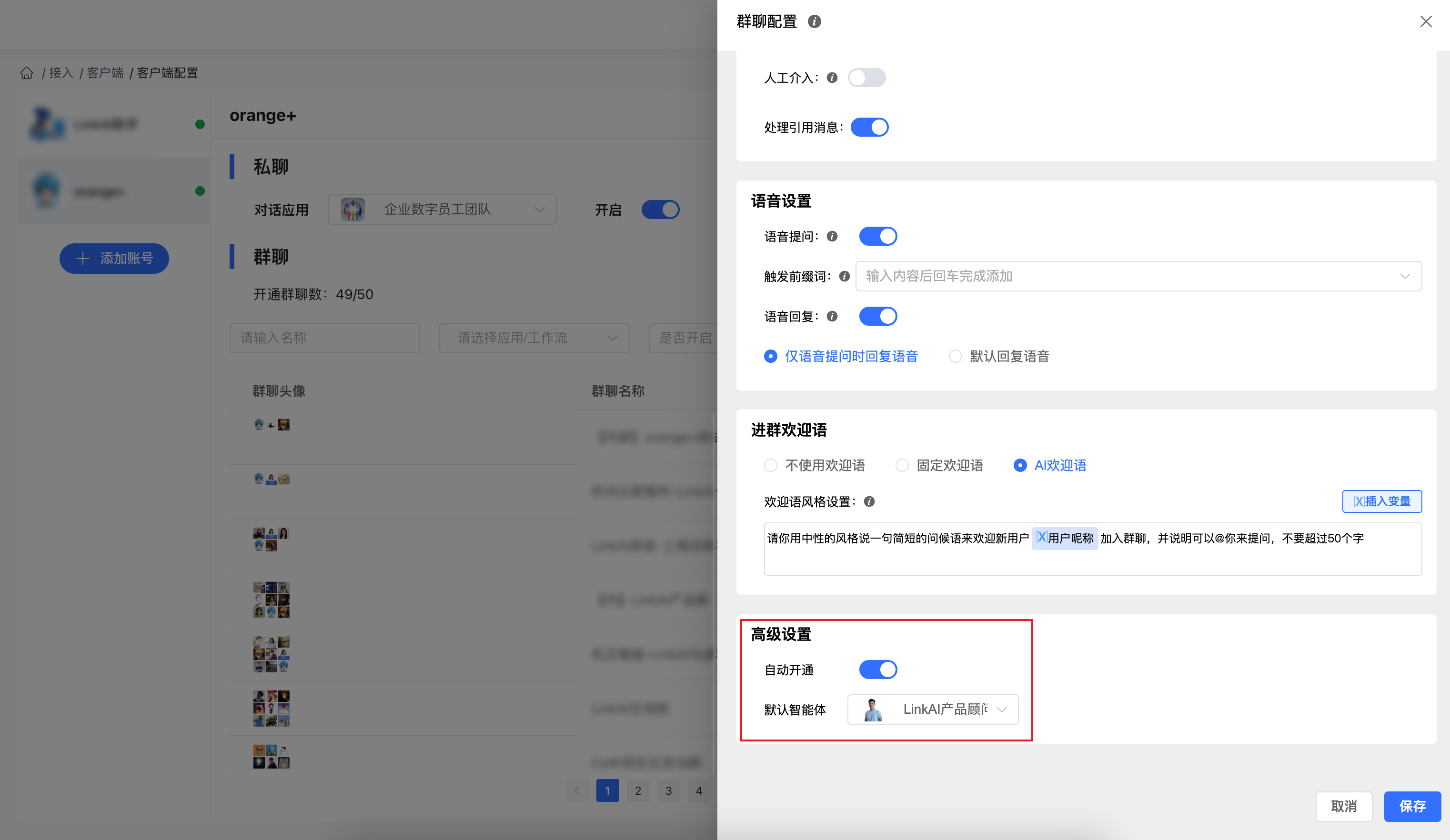 操作路径为 "客户端配置 - 群聊全局配置 - 高级设置":