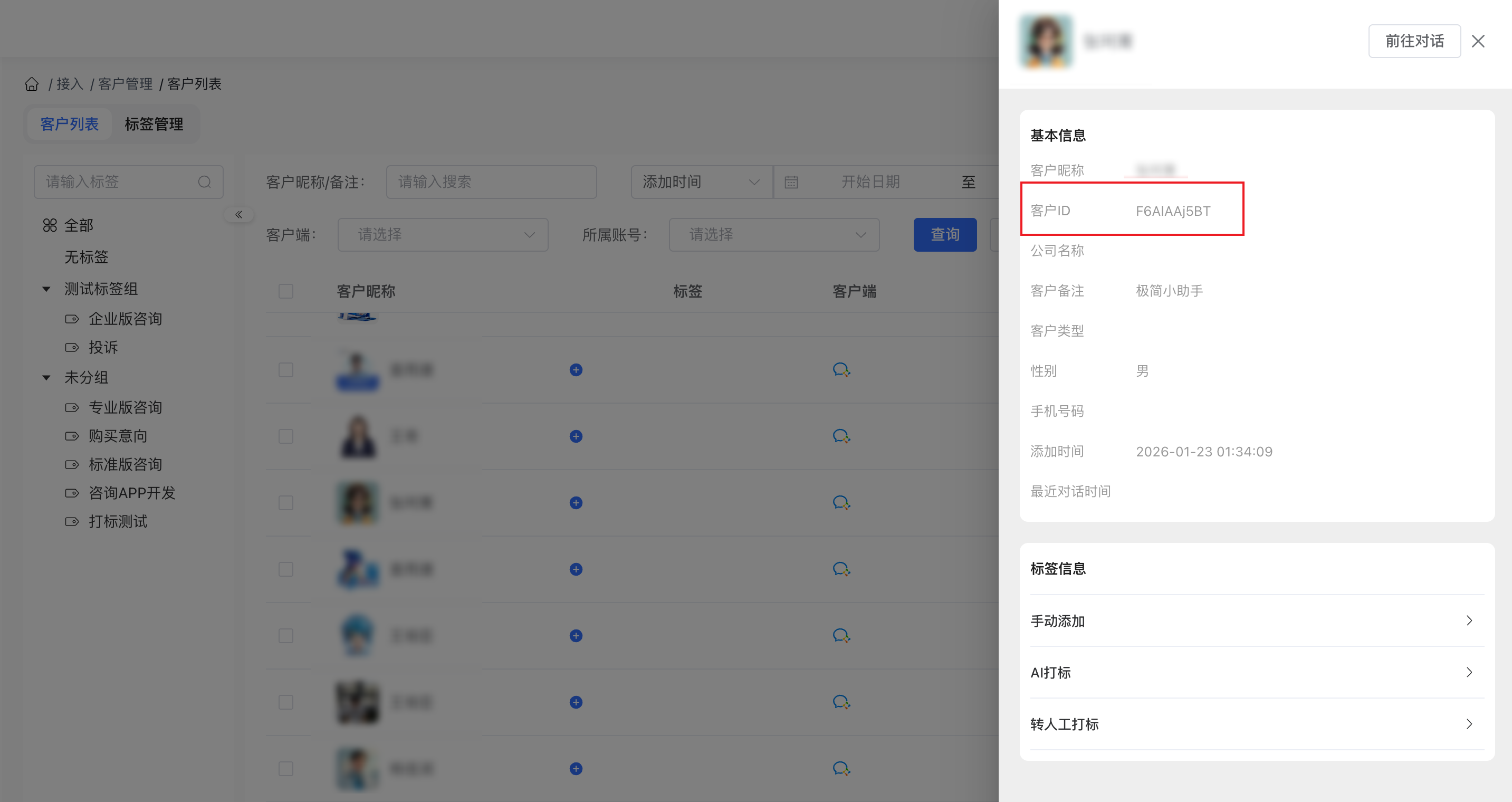 用户ID则在 "客户管理 - 详情" 中查看: