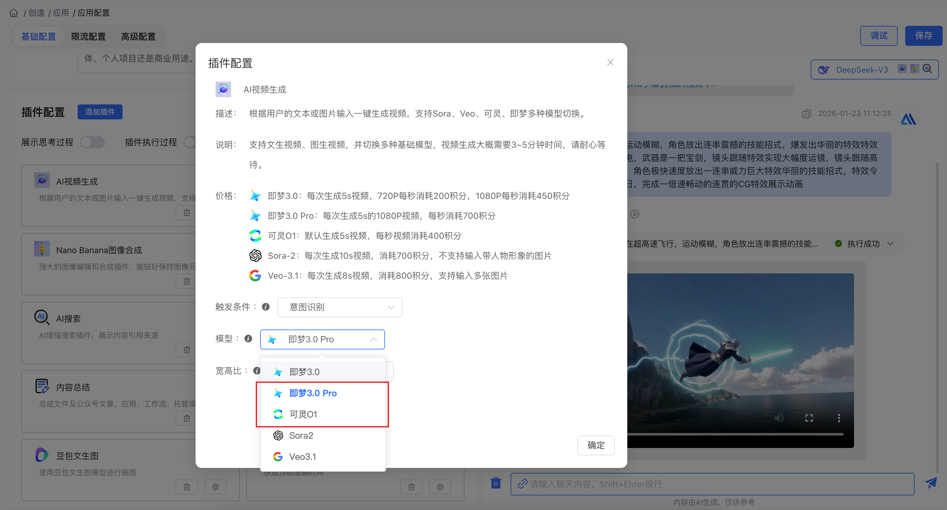 新增两个强大的视频生成模型,在 「视频生成插件」 中进行模型切换,插件可在应用或工作流中使用: