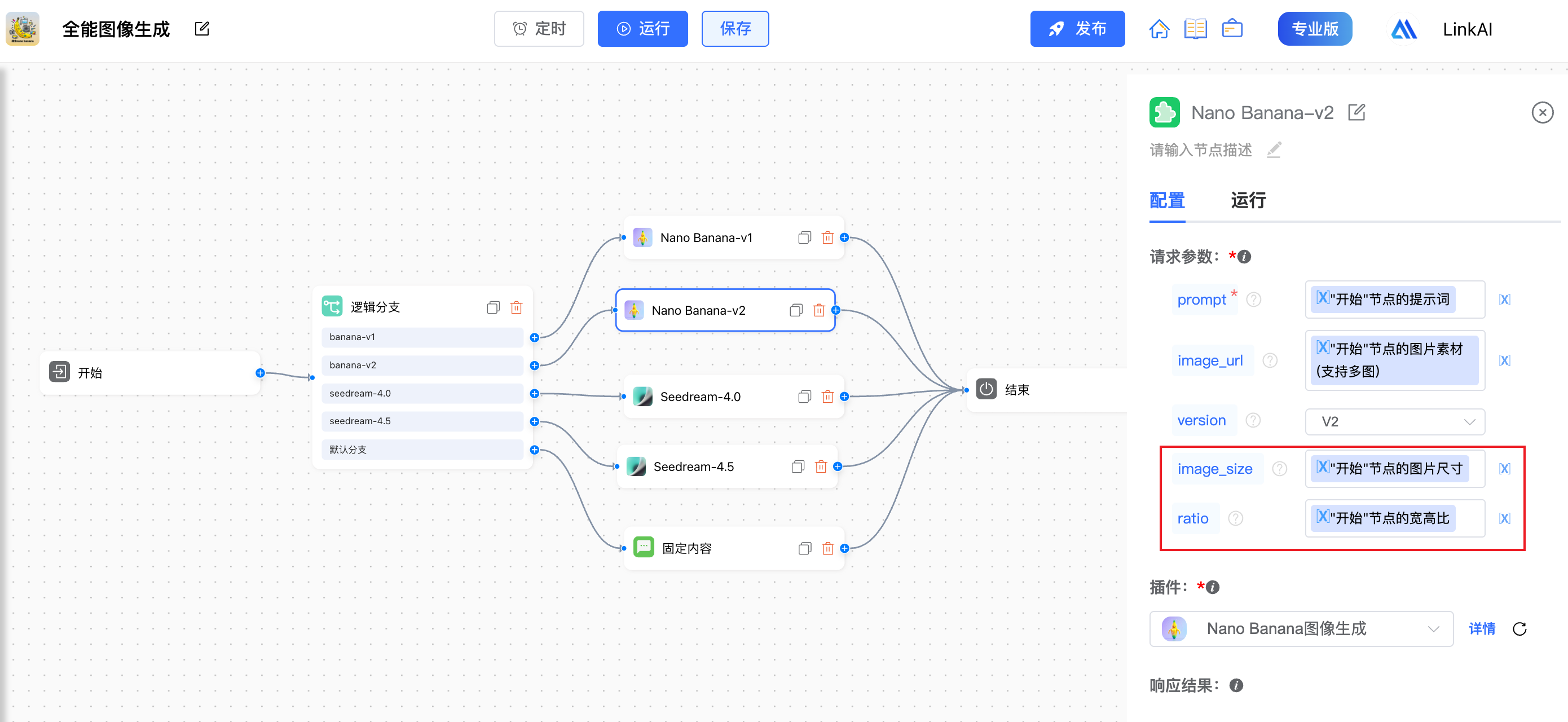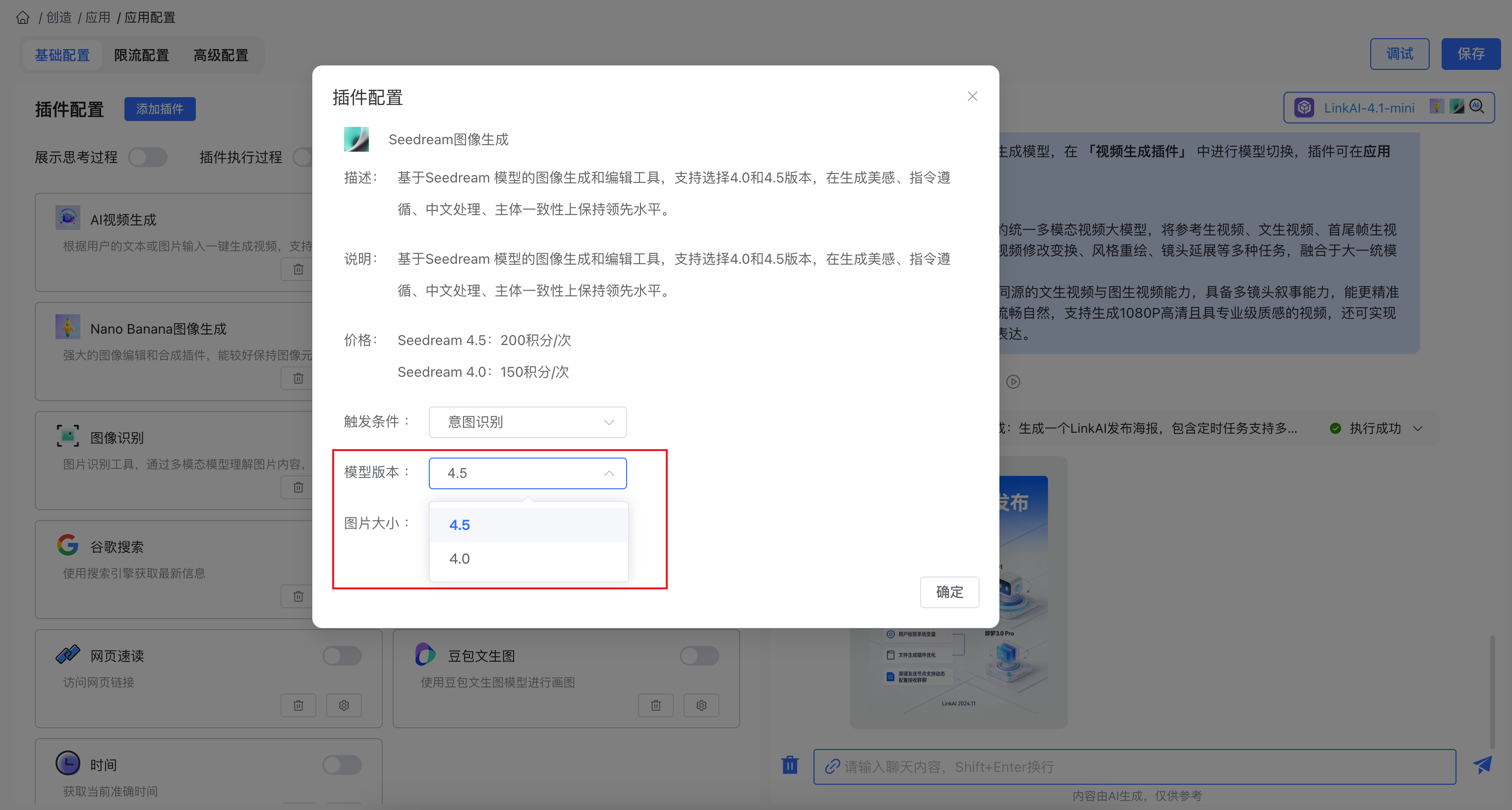 在 「Seedream图像生成」 插件中可选择模型,可在应用及工作流中使用: