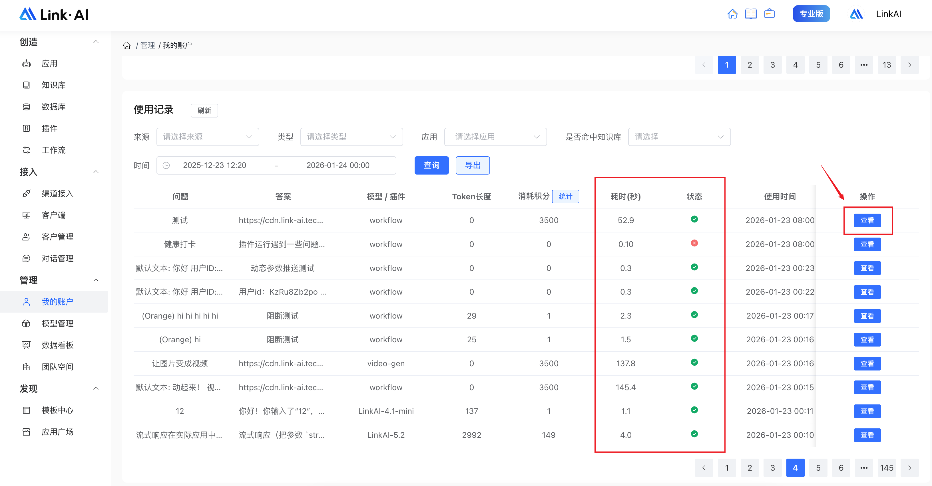 - 导出优化:一次性导出条数限制提升至1万条,增加耗时和状态字段导出
